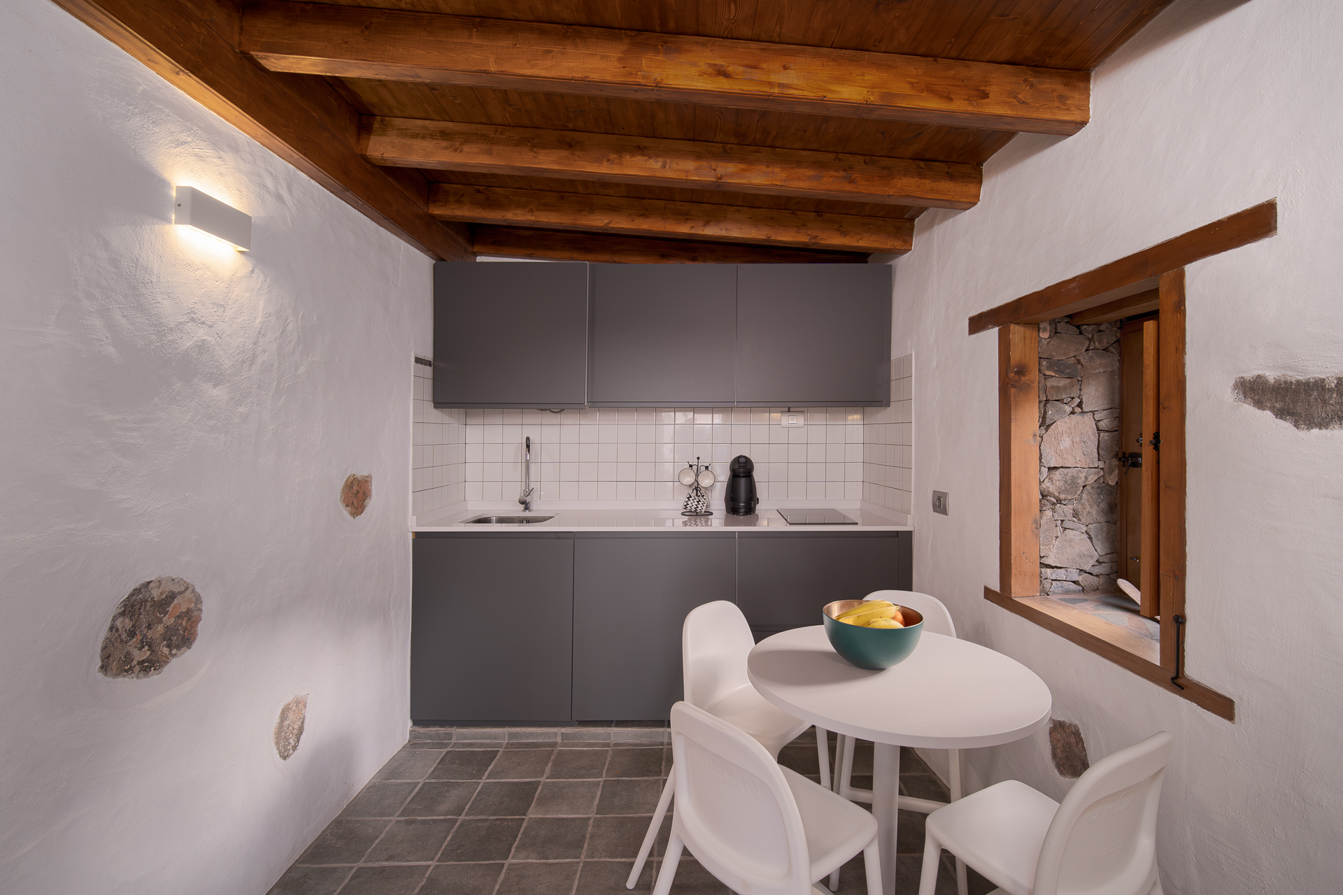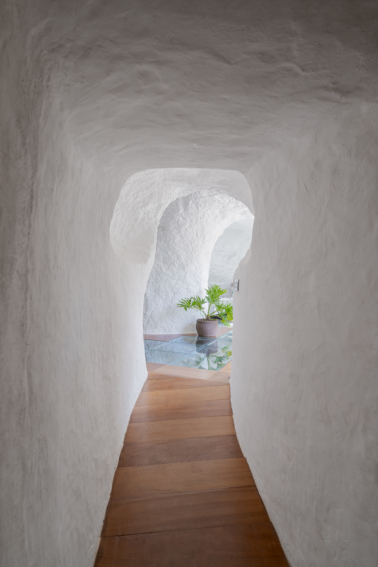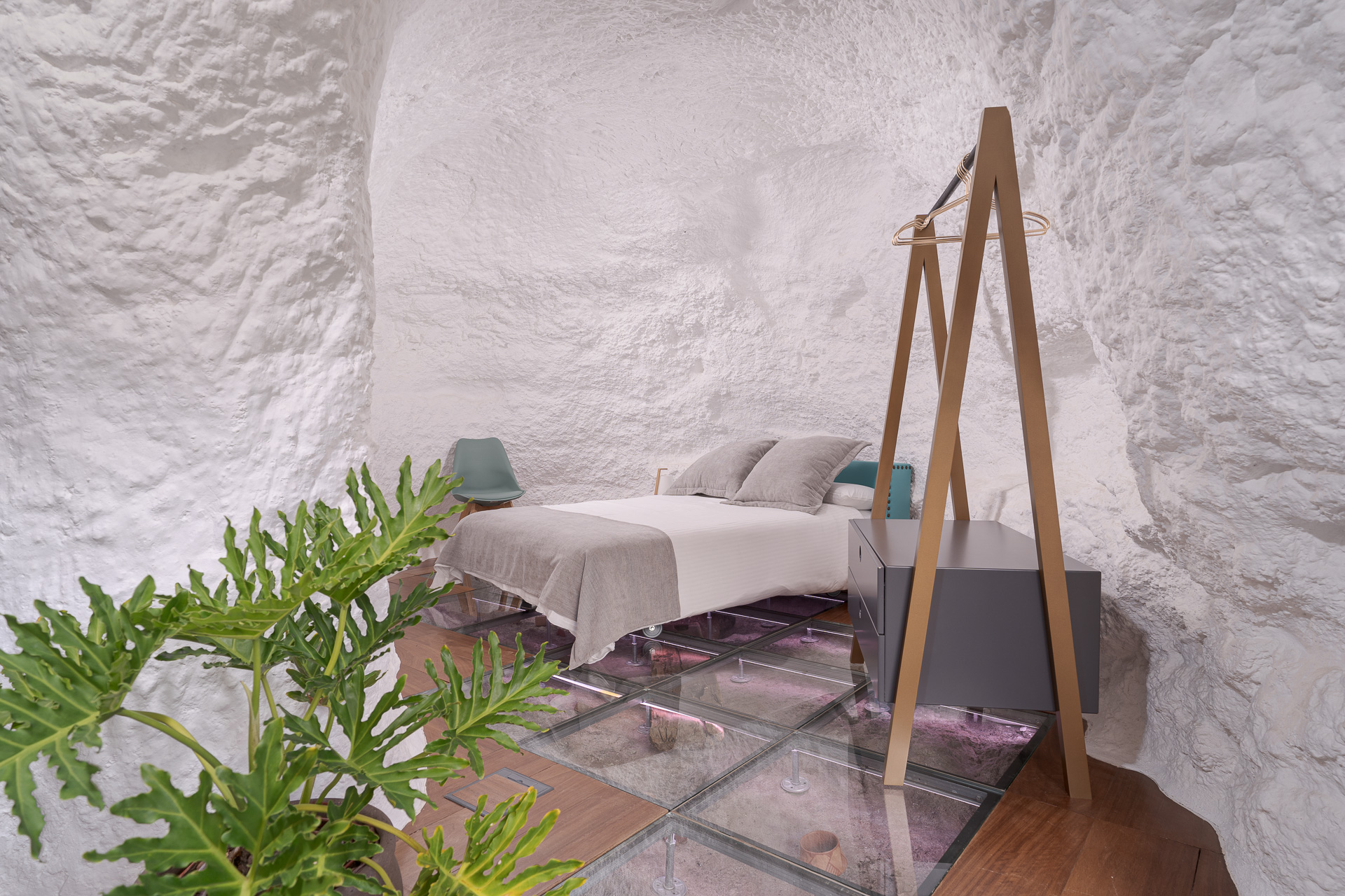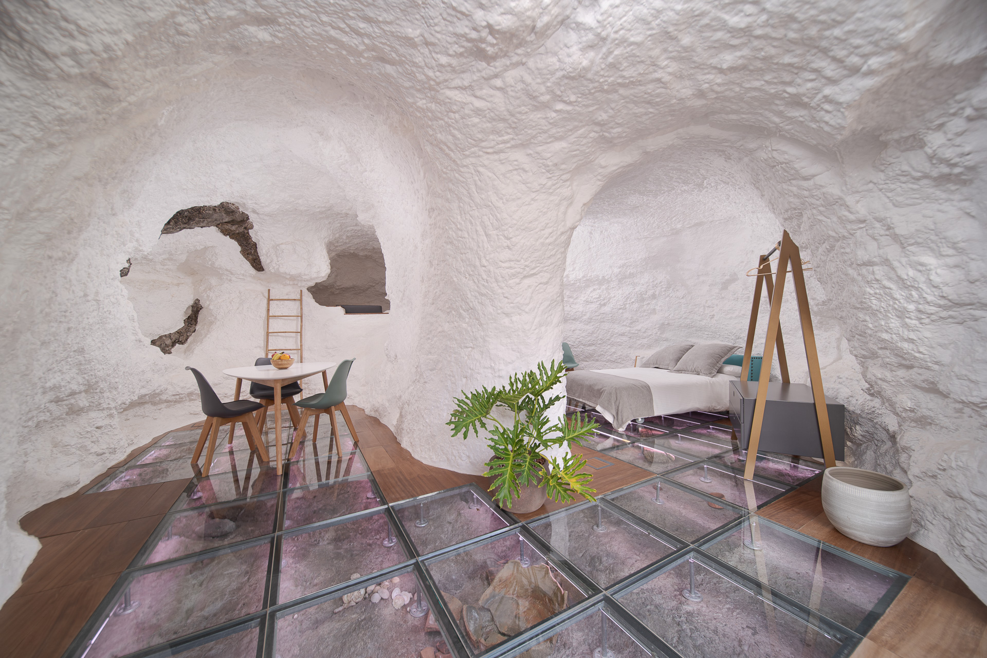 Das Innere verbindet Geschichte und Moderne. Es besticht durch einen Glasboden, der den ursprünglichen Fels der Höhle freigibt, sowie durch ein Lichtspiel, das eine einhüllende Atmosphäre schafft. Auf der privaten Terrasse mit Chill-out-Bereich scheint die Zeit stillzustehen, während Sie die Meeresbrise und unvergessliche Sonnenuntergänge in einer Umgebung genießen, die für den indigenen Adel geschaffen scheint.