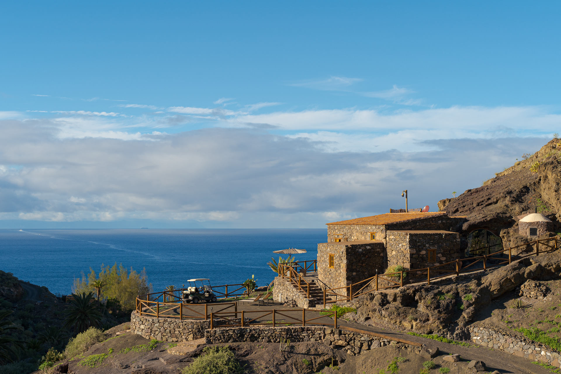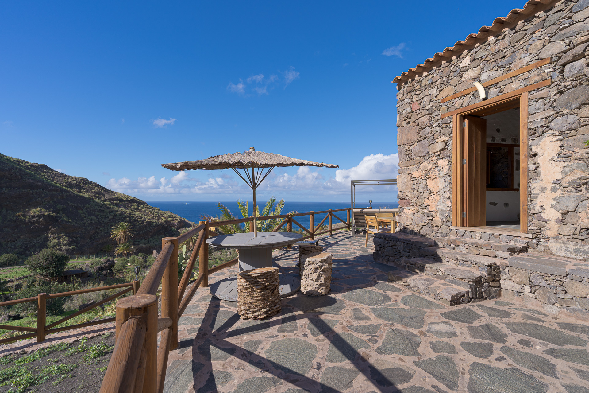 Dieses Höhlenhaus befindet sich in historischer Lage und war im 15. Jahrhundert das Zuhause von Fernando Guanarteme, dem letzten indigenen König von Gran Canaria. Dank seiner erhöhten Lage auf dem höchsten Punkt der Finca bietet es einen unvergleichlichen Panoramablick auf das Guayedra-Tal, das Tamadaba-Massiv und das Meer. Es garantiert Privatsphäre und eine einzigartige Verbindung zur Natur.
