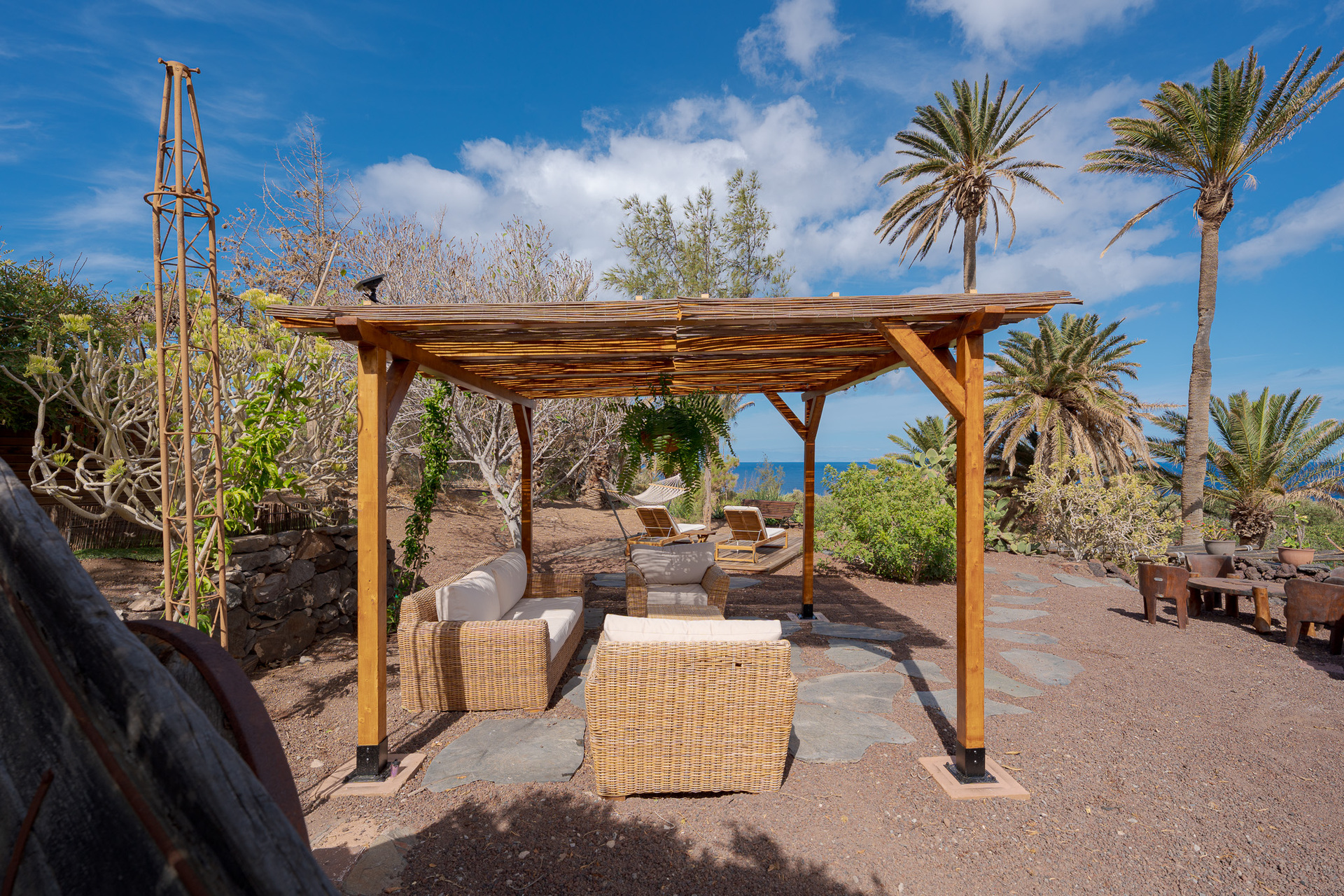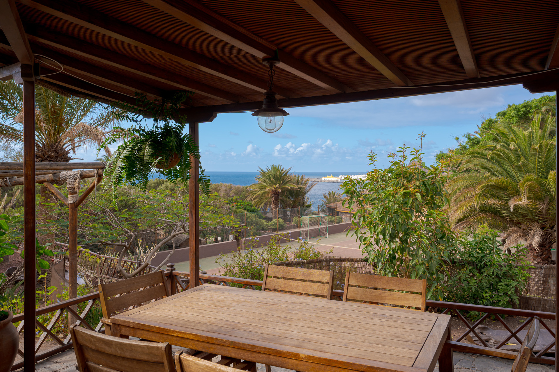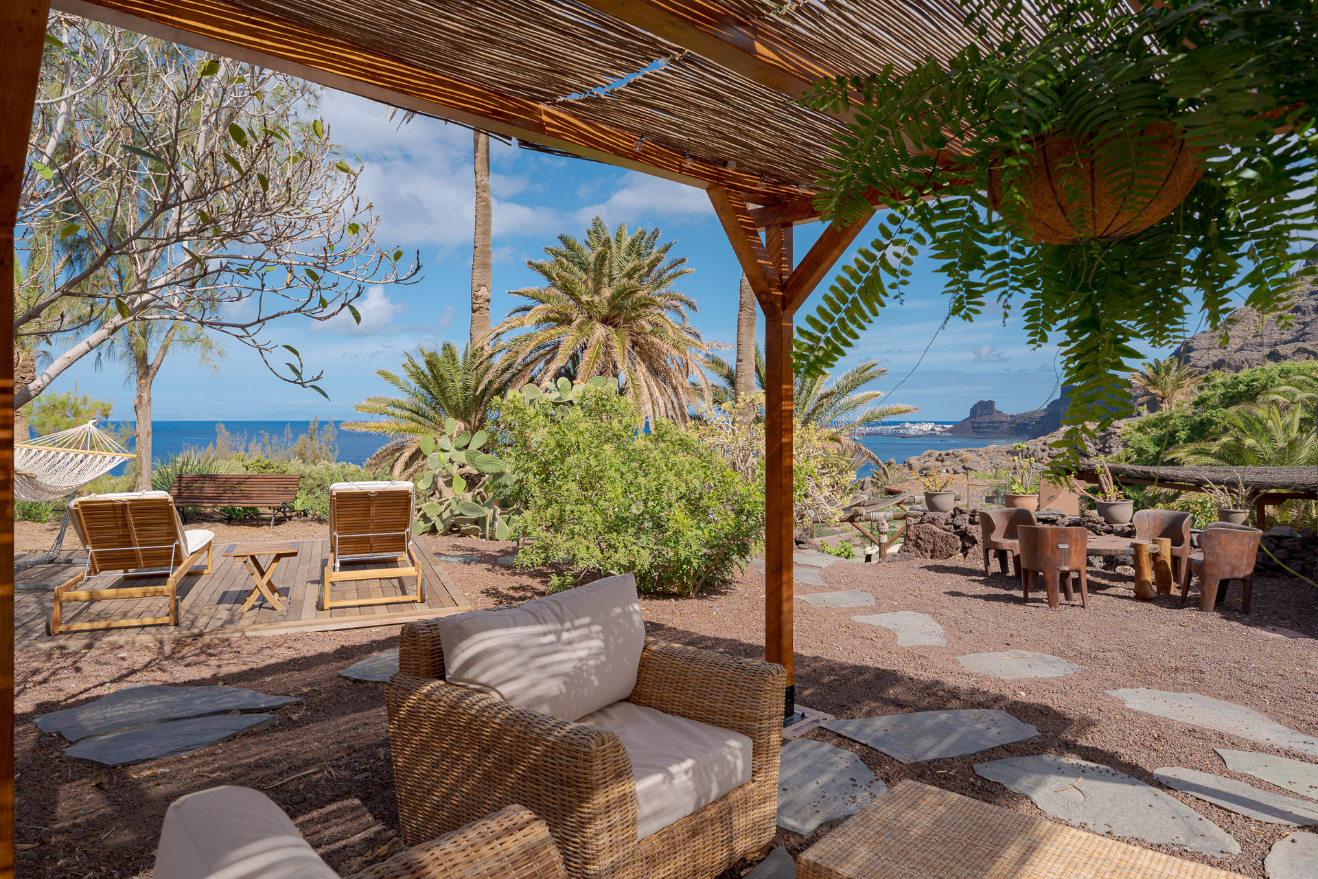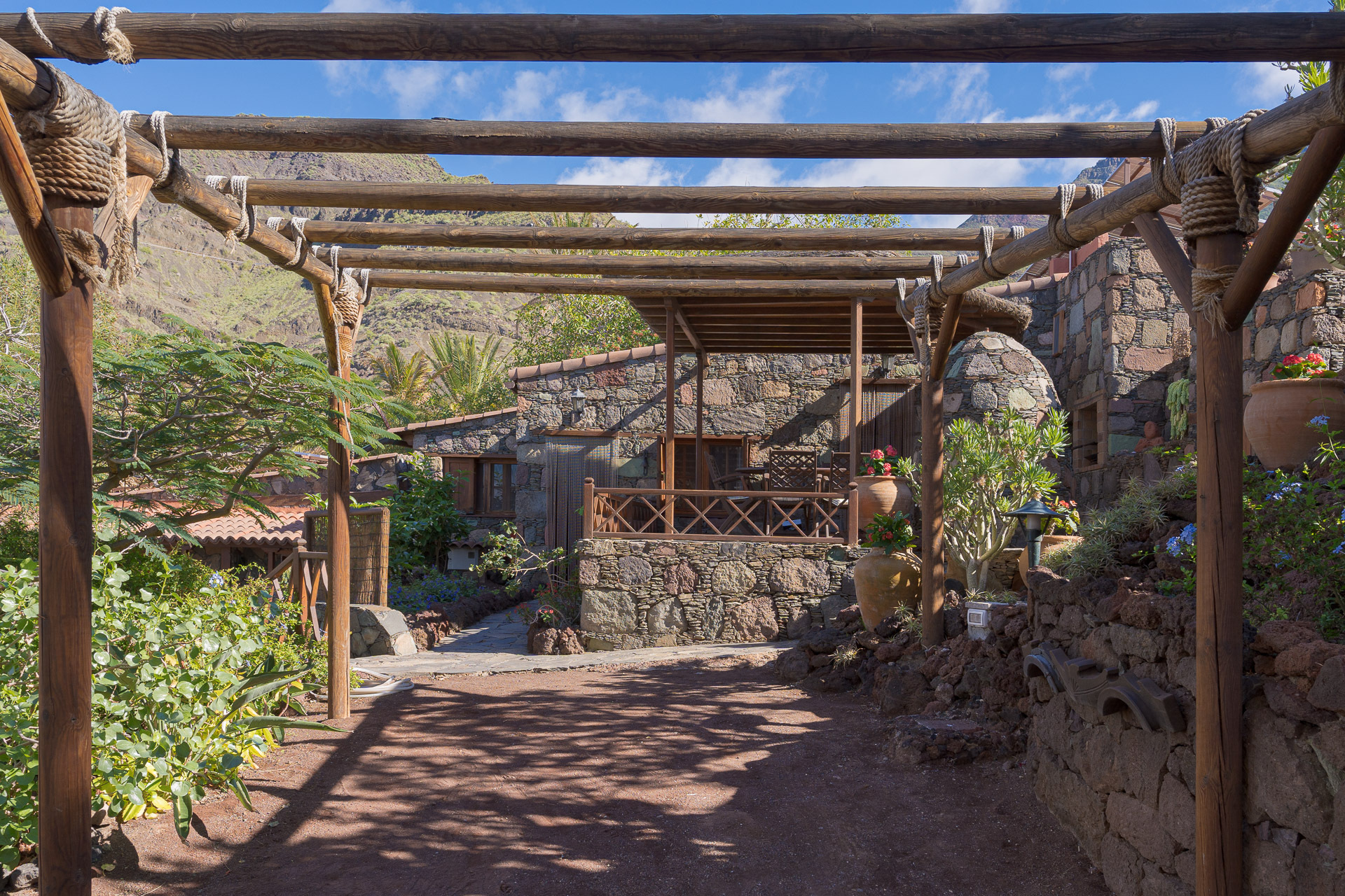 Cette villa accueillante et charmante est située dans la partie basse du domaine, à l'ombre de grands palmiers, et offre une vue magnifique sur l'océan et le Puerto de las Nieves, à Agaete.